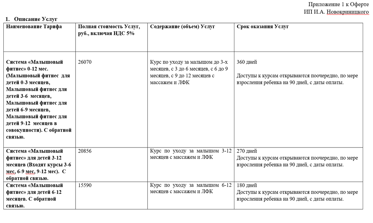 Приложение 3 к Оферте ИП И.А. Новокриницкого