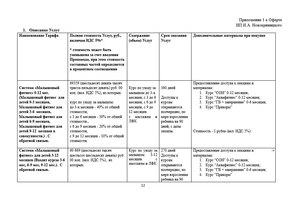 Приложение 2 к Оферте ИП И.А. Новокриницкого